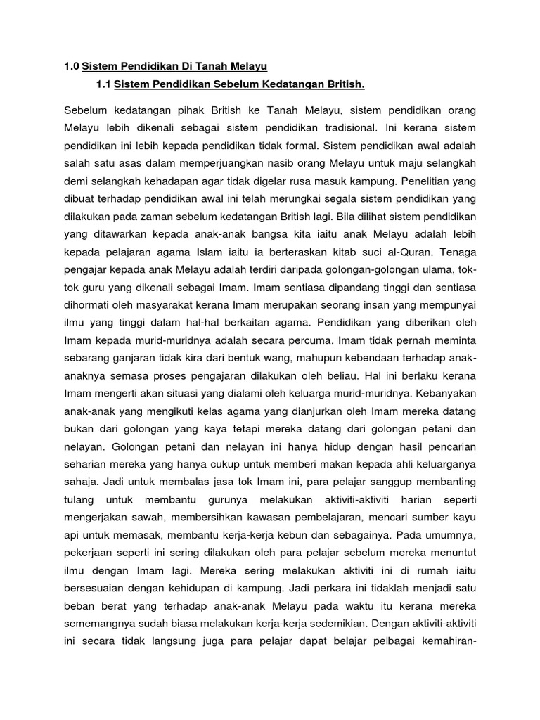 Sistem pendidikan sebelum kedatangan british sejarah pendidikan di malaysia doc 5 6210860079697100890 docx ahmad danieel academia edu sejarah pendidikan di malaysia. Sistem pendidikan sebelum kedatangan british. Masjid surau dan istana dijadikan tempat belajar. Selepas kedatangan british sistem pendidikan semakin berkembang.