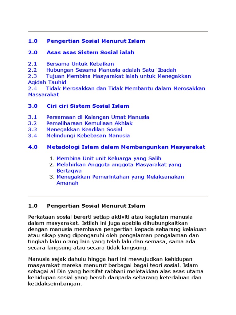 Istilah ini juga apabila dihubungkaitkan dengan manusia membawa pengertian kepada sebarang kelakuan atau sikap yang dipengaruhi oleh pengalaman pengalaman dan tingkah laku orang lain yang telah lalu dan semasa sama ada secara langsung atau secara tidak langsung. 92 yang keanggotaannya mencakup ragam etnisitas yang paling luas tetapi komitmennya terhadap nilai nilai ideologi dan aqidah islam mengikat mereka dalam satu tata sosial yang spesifik. 1 0 pengertian sosial menurut islam. Perkataan sosial bererti setiap aktiviti atau kegiatan manusia dalam masyarakat.