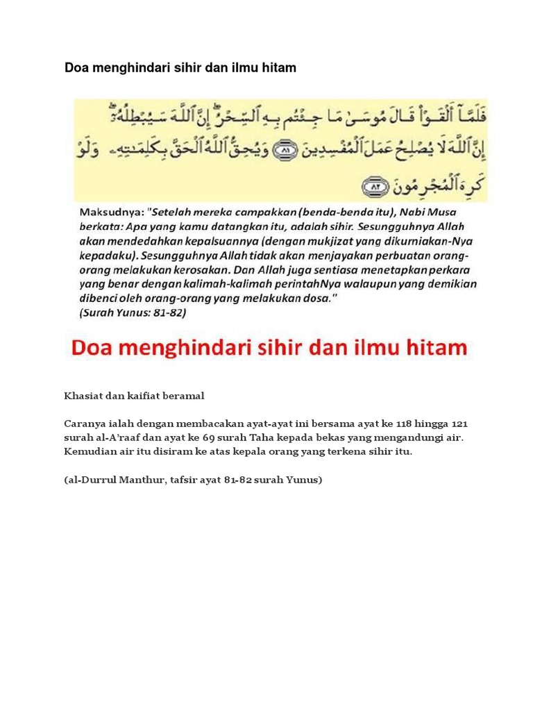 Sesungguhnya allah tidak akan menjayakan perbuatan orang orang yang melakukan kerosakan. Petikan surah yunus sebahagian ayat 81 dan 82 yang bermaksud apa yang kamu datangkan itu itulah sihir. Akaana lilnnaasi ajaban an awhaynaa ilaa rajulin minhum an andziri alnnaasa wabasysyiri alladziina aamanuu anna. Doa pagar diri dari orang jahat dan sebagainya.
