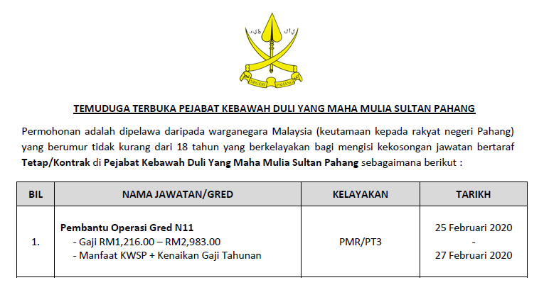 Tarikh Pembayaran Gaji Kerajaan Negeri Pahang 2020