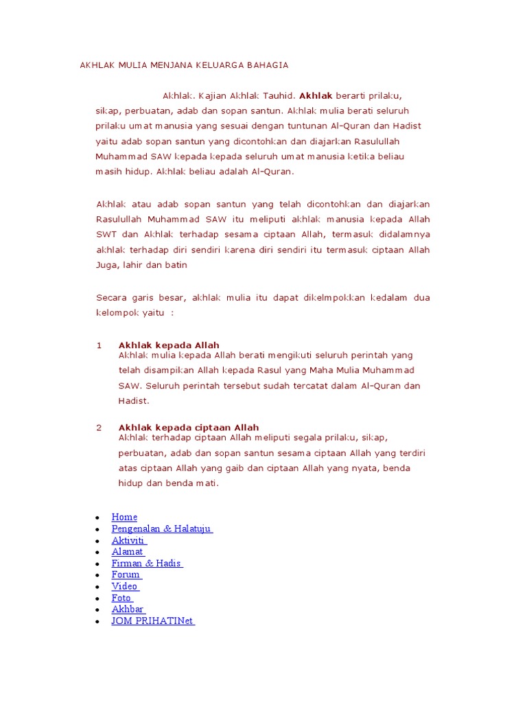 Fathimah madaniyyah m pd i education experience. Menurut istilahnya akhlak merupakan sifat yang tertanam di dalam diri seorang manusia yang bisa mengeluarkan sesuatu dengan senang dan mudah tanpa adanya suatu pemikiran. Sesungguhnya salatku ibadahku hidupku dan matiku hanya untuk allah rabb semesta alam tiada sekutu bagi nya dan demikianlah aku diperintahkan dan aku bagian dari orang islam ya allah berilah aku amalan yang terbaik dan akhlak yang paling mulia tiada yang bisa memberi yang terbaik selain engkau dan lindungilah aku dari amalan dan akhlak yang buruk tidak ada yang. Terima kasih kepada rakan yang menyumbang skrip yakni rakan dari daerah perak tengah.