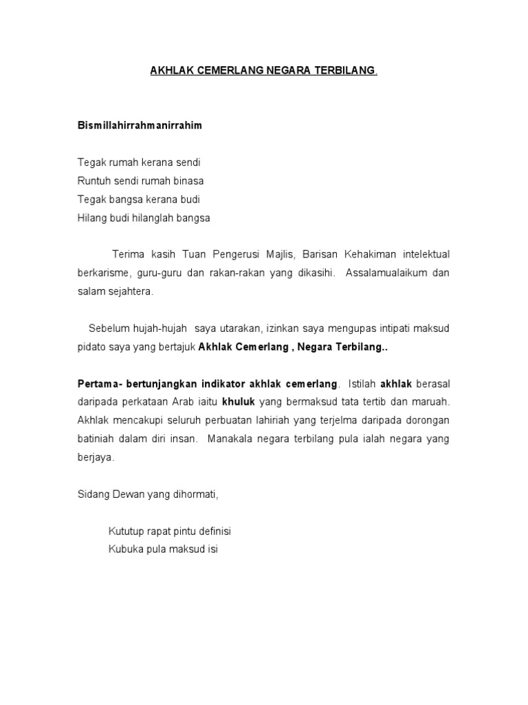 Teks kalam jamaie akhlak mulia. Akhlak adalah pengertian macam ruang lingkup dan contohnya dosenpendidikan com kata akhlak berasal dari bahasa arab yakni al khulk yang berarti tabeat perangai tingkah laku kebiasaan kelakukan. Baca disini untuk selengkapnya. Artikel mengenai teks khutbah idulfitri 1439 h. Salah satu darinya adalah skrip kalam jamaie naib johan peringkat negeri perak yang lepas semoga contoh skrip ini dapat memberikan panduan bagi menghasilkan atau mencipta skrip yang baru.