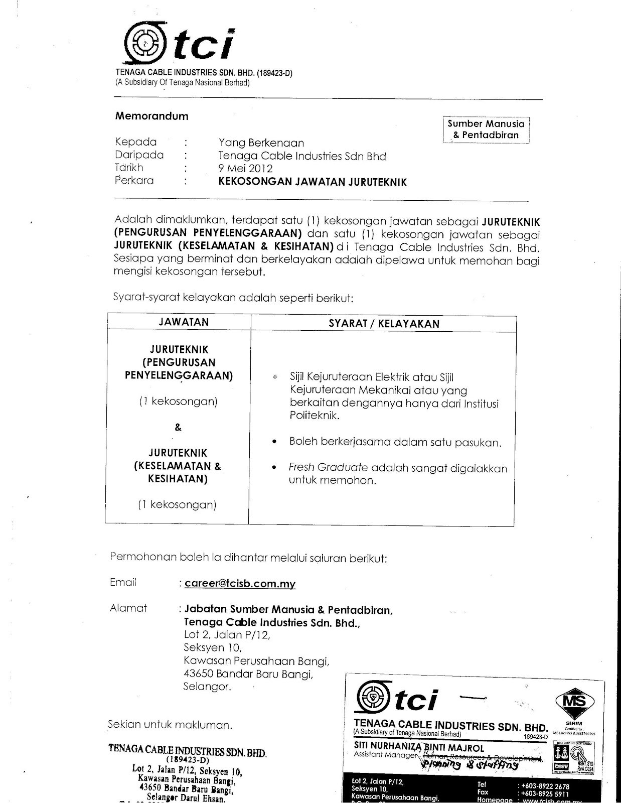 Tenaga cable industries sdn. Lot 2 jalan p 12 section 10 kawasan perusahaan bangi bandar baru bangi 43650 malaysia. Lot 2 jalan p 12 seksyen 10 kawasan perusahaan bangi 43650 bandar baru bangi selangor darul ehsan malaysia. Developed by mystarjob network sdn bhd.