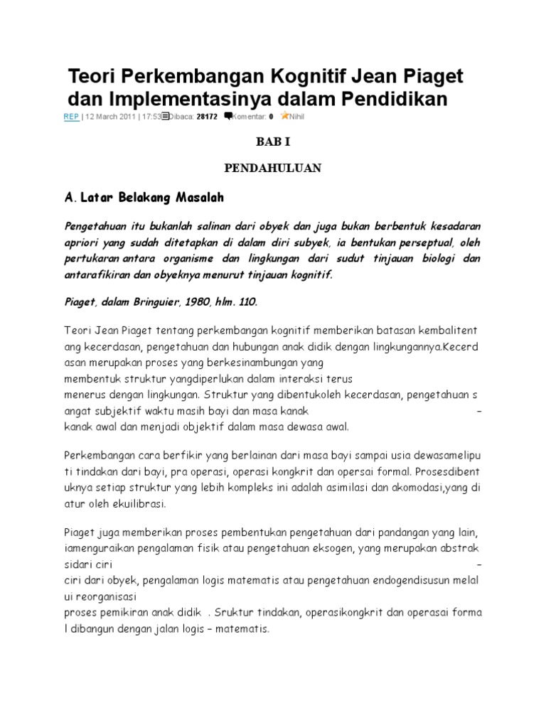 Teori Perkembangan Kognitif Jean Piaget Pdf