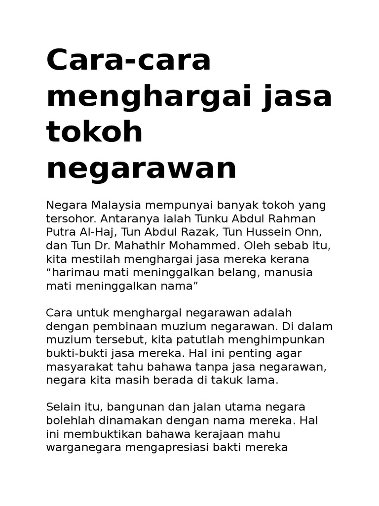 Cara cara menghargai jasa tokoh negarawan cara cara menghargai jasa tokoh negarawan negara malaysia mempunyai banyak tokoh yang tersohor. 11 tok gajah tok gajah adalah ayah kepada pahlawan melayu pahang iaitu mat kilau. Perjuangan mencapai kemerdekaan negara pada 31 ogos 1957 adalah hasil usaha yang dilakukan oleh pemimpin masyarakat yang berwibawa dan berdedikasi. Tok gajah merupakan tokoh yang terlibat bersama dengan datuk bahaman mat kilau dan datuk lela menentang penjajah inggeris.