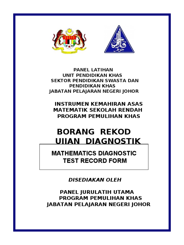 Ujian diagnostik matematik 4 17mb 8. Ujian diagnostik disediakan oleh jabatan pelajaran negeri. Instrumen senarai semak disleksia issd 0 38mb cikgu. Instrumen pengesanan murid bermasalah dalam pembelajaran ipmbdp 0 75mb 9.