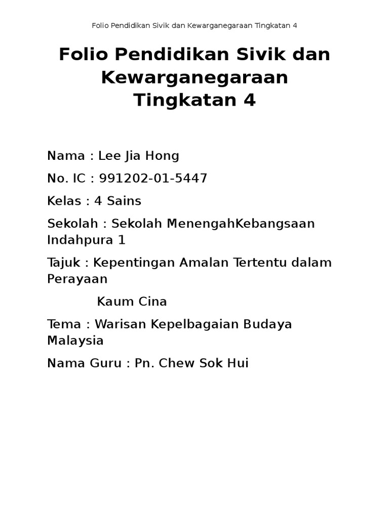 Adat resam dan pantang larang pelbagai kaum kaum cina kenduri menyambut bayi upacara minum teh menyolek mayat. Related posts to contoh folio sivik tingkatan 5. Malaysia negara berdaulat 6. Selamat datang ke blog pendidikan sivik dan kewarganegaraan tingkatan 5.